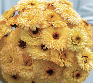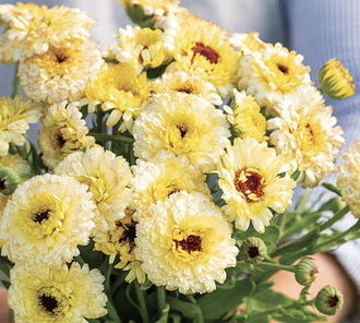 4-pack of Calendula annual flowers, creamy/gold petals with dark center, 2-3" blooms on sturdy stems