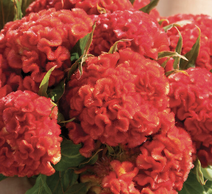 Annual, 2-6” plumes, feathery, in scarlet, orange, yellow, pink, and cream. 10-14 stems per plant. 33-48” tall.
