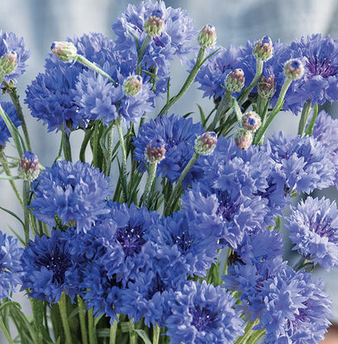 Classic tall blue cornflower also known as Centaurea, very similar to Florist Blue Boy, many 1.5" blooms