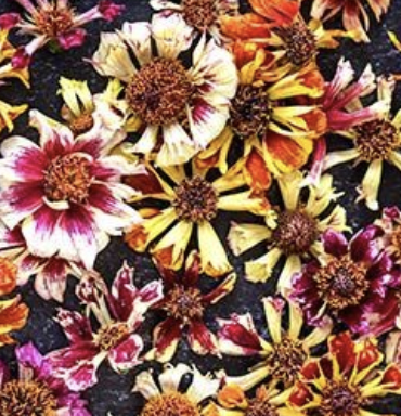 Pollinator attactor, 1" flowers, tubular petals in gold, rust, orange and raspberry