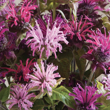 Semidouble blooms in shades of lavender, salmon, magenta, and pale to bright pinks