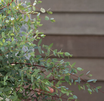 Tender perennial, dark blue-green eucalyptus, compact habit 2–3' tall, delicata leaf-shape