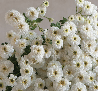 Also known as Feverfew, tender perennial, 28-36” tall, abundant double white blooms with yellow/lime centers.