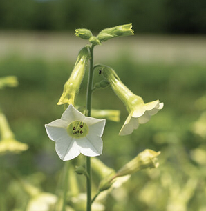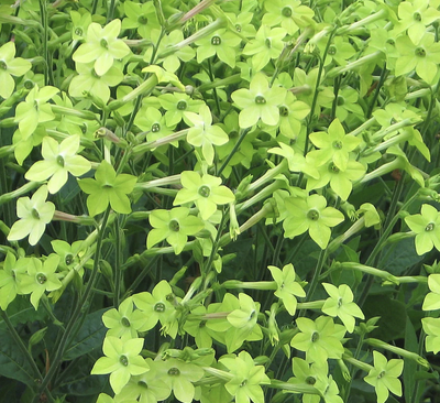 Annual, 36-48” tall, velvet green tobacco leaves with chartreuse trumpet flowers