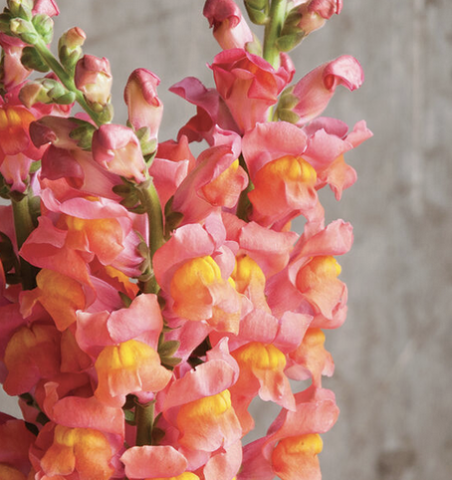Coral and orange blooms, warm season annual snapdragon, 32-48" tall
