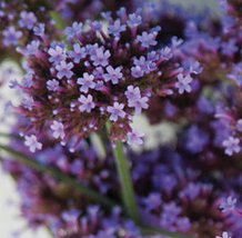 Tender perennial, Heat tolerant, 36-48” tall, Sun, tiny clusters of purple flowers, blooms July to frost