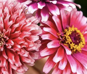 Annual, 24-30” tall, 1-2” double blooms, rose/purple/scarlet/yellow/white.