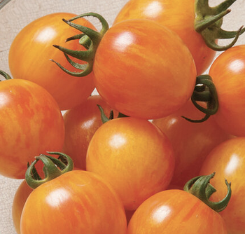 Cherry Tomato, farm favorite! Golden yellow/orange, crack resistant, early. Indeterminate.