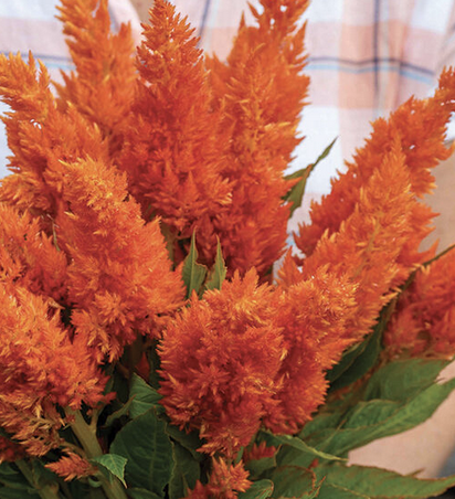 Annual, 4 pack of celosia, 3-5" tall plumes in bright orange color