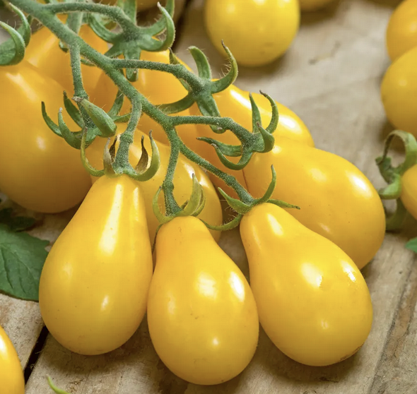 Cherry Tomato, lemon yellow and pear-shaped, sweet and not that tart. Indeterminate.